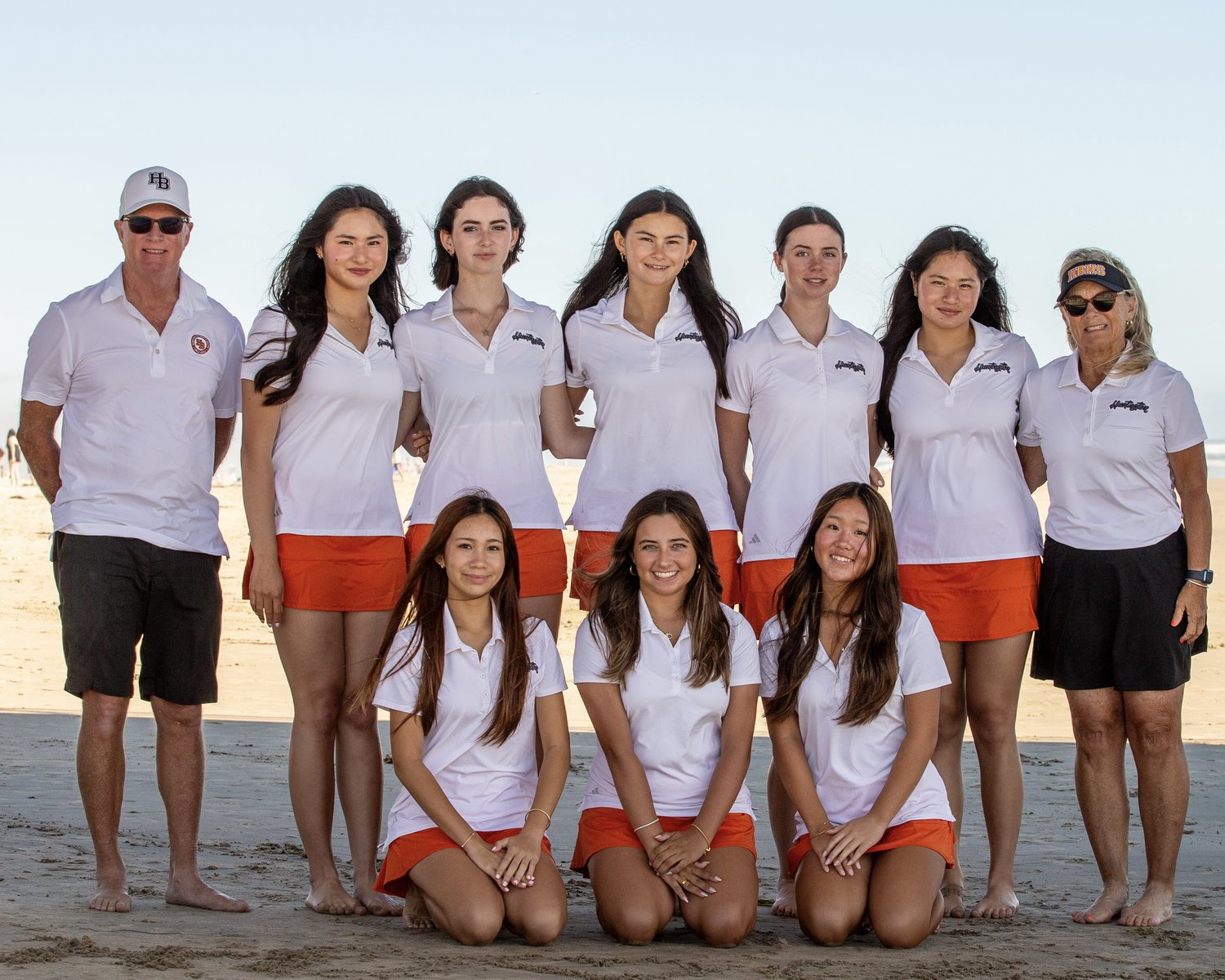 Second row: Coach Dennis Holloway, Madelyn Untalan, Marina Pejakovic, Abbi Kerwin, Morgan Stouffer, Alexix Untalan, Coach Karen "Blue" Morehouse